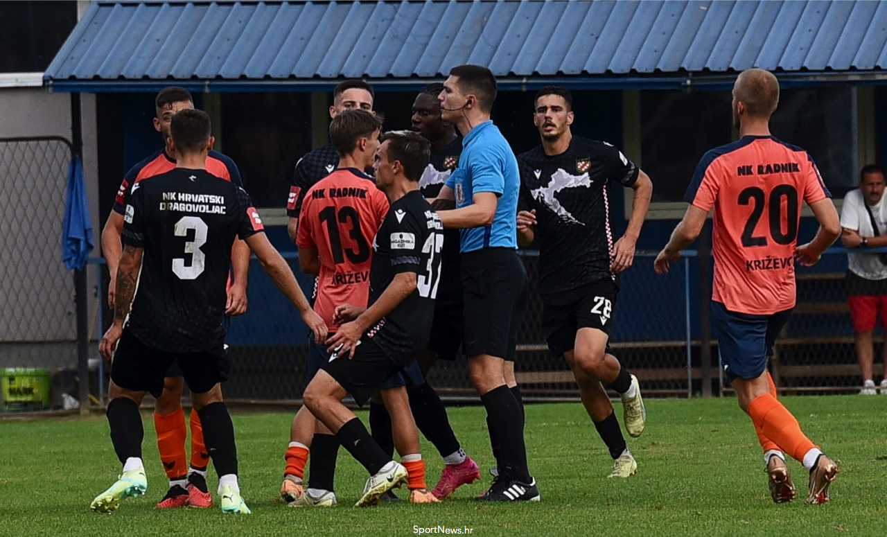 Nakon jednog duela kapetana gostiju Mladena iz 52 minute s Veljačom, Kečinović po drugi puta propušta dosuditi prekršaj na kapetanu gostiju, opomenut je trener Vodanović zbog prigovora, a odmah u nastavku zaiskrilo je u 54', zbog naguravanja u kojem su vinovnici brojni igrači oba tima, Kečinović poseže za žutim kartonom koje pokazuje Mihaelu Srbljinoviću kod gostiju i Sethu Amoatengu kod Hrvatskog dragovoljca. Primjer to kao to biva kada sudac izgubi kontrolu nad utakmicom, barem i na nekoliko minuta, ovaj puta bez većih posljedica, ako zanemarimo tri žuta kartona, treneru Vodanoviću i već spomenutom dvojcu uzavrele krvi.