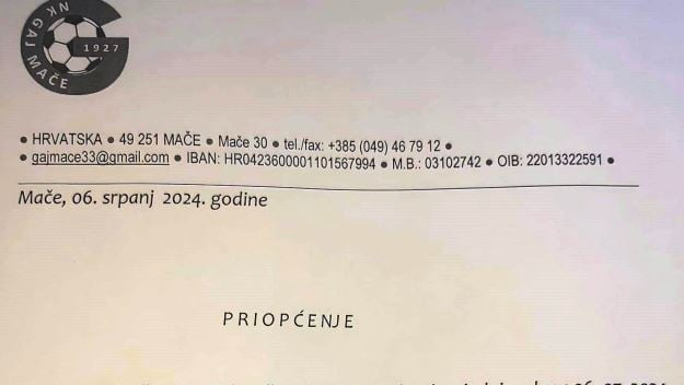 ''Upravni odbor NK Gaj Mače održao je telefonsku sjednicu, dana 06.07.2024. godine i donio sljedeću odluku:Većinom glasova članova UO NK Gaj Mače, a uz podršku sponzora i načelnice općine Mače Mladenke Šimunec-Mikulec podržan je prijedlog da NK Gaj Mače u sezoni 2024/25. nastupa sa seniorskom momčadi u 3. NL Centar (isto kao i do sad.)''